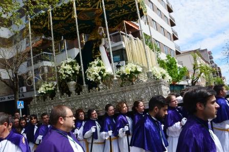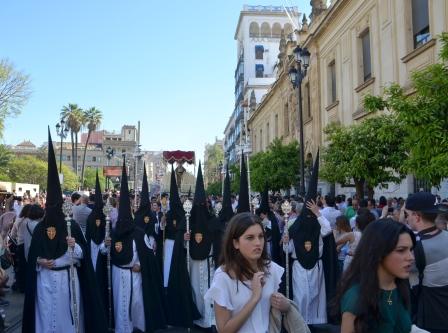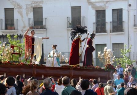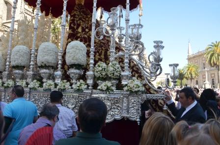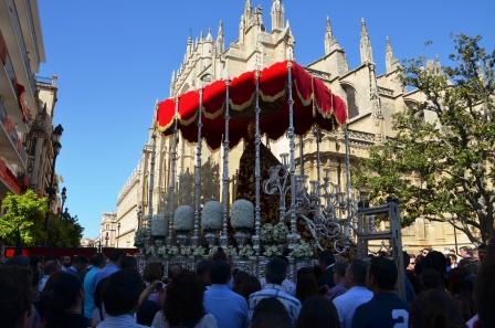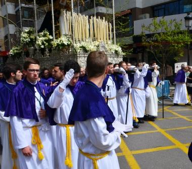Gegen 16.00 Uhr hörten wir wieder Trommeln im Gleichtakt. Wieder eine Prozession. Diese haben wir uns angesehen - in Ruhe, ohne Schubsen und Schieben, direkt vor der Basilika - und waren sehr beeindruckt von dieser Tradition. In der Prozession liefen Männer in Gewändern, mit Schuhen, in weißen Socken oder gar barfuss. Die Tragemonstranzen aus Silber mit einem Gewicht von mehr als einer Tonne (1.000 Kg) wurde getragen - aber von entsprechend kräftigen Männern mit Gewichtheber-Gürteln! Eine ähnliche Monstranz haben wir in Cadiz in der Kathedrale gesehen, die Dimension: 3m x 4m und ca. 5m Hoch, aus Silber getrieben. Direkt vor uns wurde das Gewicht abgesetzt, die Schabracken hoch geschlagen und die Männer untendrunter wurden mit Wasserbechern versorgt. Am 1.April war auch ein entspr. Bericht im "Auslands-Journal".