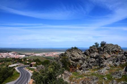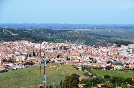 Klosterberg ist 600 m hoch und der Blick von hier oben in die Extremadura