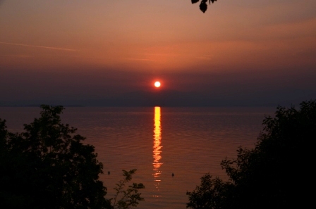 Auslastung um diese Zeit und direkter Zugang zum Gardasee. Am Abend hatten wir von unserem Platz eine gute Sicht über den See und einen wunderschönen Sonnenuntergang. Am anderen Morgen draußen Frühstücken und die Spatzen holen sich auch ihren Anteil - purer Luxus. Bei 24°C und Sonnenschein noch einmal auf die Fahrräder und zur anderen Seite, Richtung Bardolino / Lazise. Jetzt fällt das Faulenzen nicht schwer... Freitag,